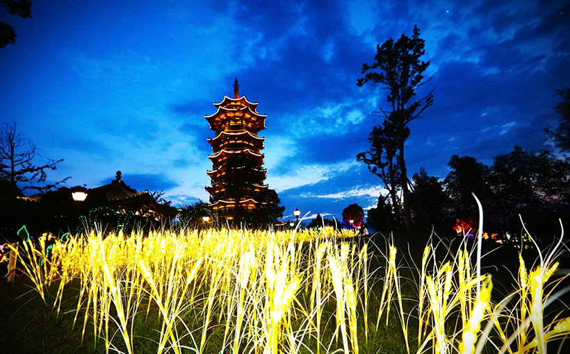 The straw castle sculpture at YangHu wetland park in ChangSha China,made by a company named Lantern Group in Zigong, which combines straw with traditional lantern technology. The sculpture is certified as the world's largest sculpture of a straw castle after the Official Field Measurement and Audit by the World Record。