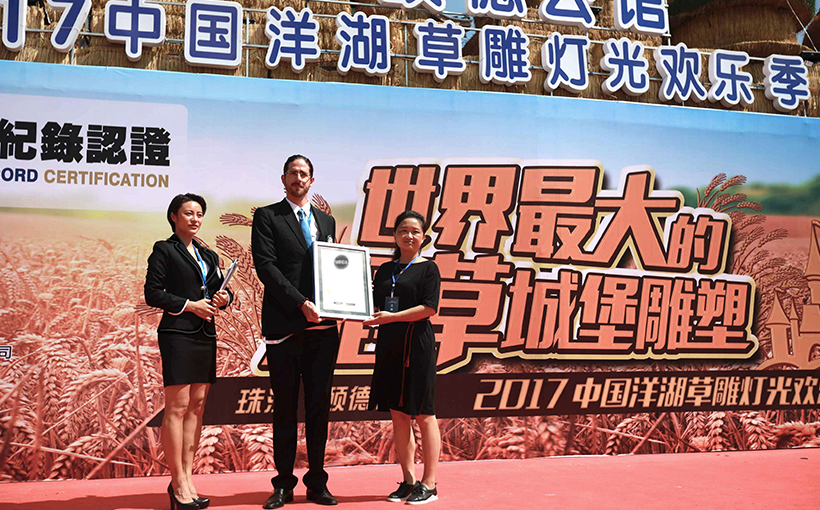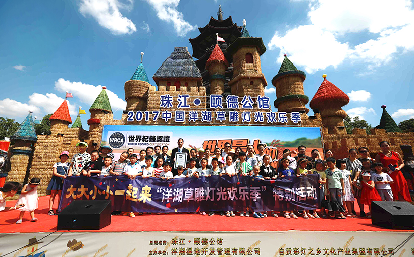 位于中国长沙洋湖湿地公园内的稻草城堡雕塑,是由自贡彩灯之乡文化产业集团制作,将稻草与传统彩灯工艺相结合搭建而成。2017年8月23日,经世界纪录认证机构(WRCA)工作人员现场测量审核,此座稻草雕塑高13.5米、长103.8米、宽度达6.9米,被认证为“世界最大的稻草城堡雕塑”。