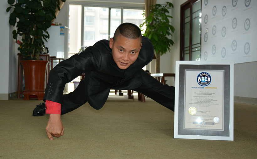In Dazhou city of Sichuan Province, Mr. Peng Shufu completed 50 push ups in 30 seconds by using only one little finger. The push ups were performed in accordance with the established standards and break all previous achievements, therefore set a new World Record.
