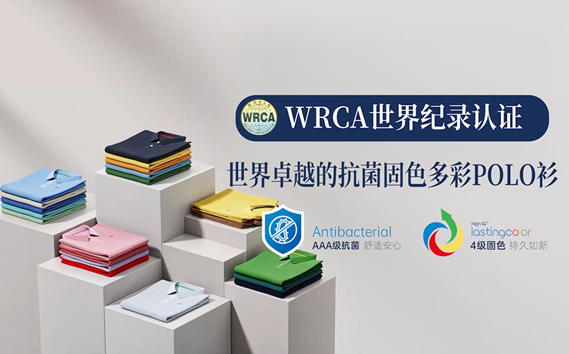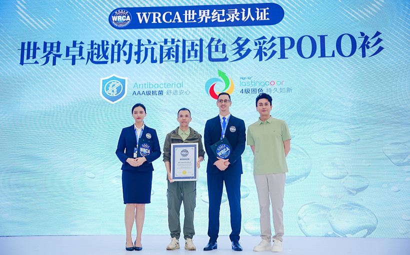 The polo shirt designed and developed by Fujian Septwolves Industry Co.,Ltd. features AAA-level antibacterial performance, a color fastness rating of level 4, and is available in 19 color options. It has been officially reviewed and certified by the World Record Certification (WRCA) as the “World’s Outstanding Antibacterial, Colorfast, and Multicolored Polo Shirt”.