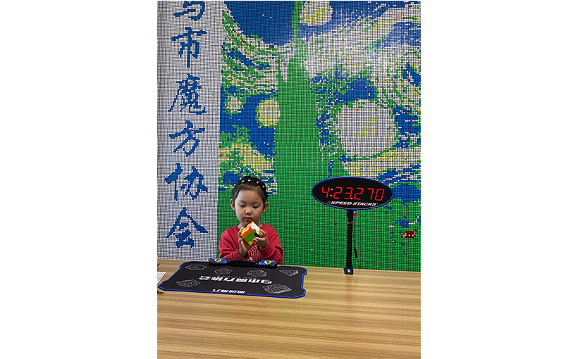 王梓芊,2016年10月8日出生于新疆乌鲁木齐市,从小就赋有很强的求知欲,1岁10个月就能掌握孔明锁三通的组合技巧和复原麦菲特金字塔魔方,2岁10个月的王梓芊,就已经完全掌握了三阶魔方、二阶魔方、金字塔魔方的复原技巧。很难想象她每天练习魔方形态能达到上百遍,小小的她要付出怎样的耐心和毅力。她最常说的一句话就是:“脑瓜就是用来思考问题的”。每当她看到不同种类的魔方,就会安静的抱着魔方自己琢磨、探索魔方的复原方法,展现出远超同龄人的学习思考能力。