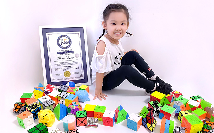 这是王梓芊继2岁11个月时创造“最小年龄还原二阶魔方”的世界纪录之后,第二次荣获世界纪录荣誉。