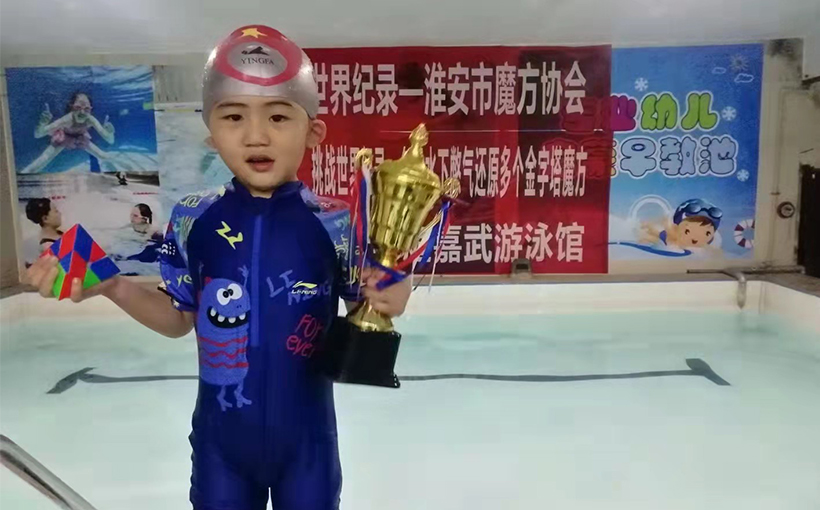 来自中国淮安市的汪凯乐(出生日期:2016年12月26日)于2022年1月21日在淮安市挑战冬季水下憋气还原金字塔魔方,成功还原数量为3个。经官方审核,汪凯乐成功创造“最小年龄水下憋气连续还原3个金字塔魔方”世界纪录。