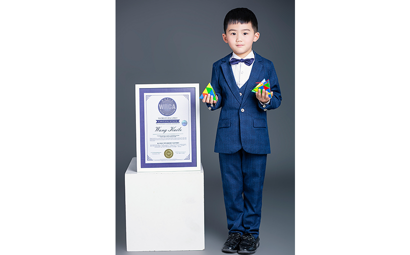 Wang Kaile (China, b. 26 December 2016) successfully solved 3 Pyraminx puzzles under water while holding breath in Huai'an City, China, on 21 January 2022 (winter). Verified by the WRCA, Wang Kaile has set the world record for the youngest person ever to solve 3 Pyraminx puzzles under water while holding breath.