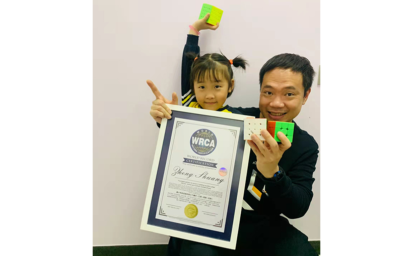 相比起常见的三阶魔方,高阶魔方更加复杂,观察的难度更高,同时对专注力的要求也更高。在谭老师的耐心指导和家长的配合下,郑爽改掉了课堂上调皮捣蛋,精神不集中等坏习惯,能长时间专注学习,并且深入思考,经过坚持不懈的学习和练习,入魔仅6个月的她便创造了奇迹!