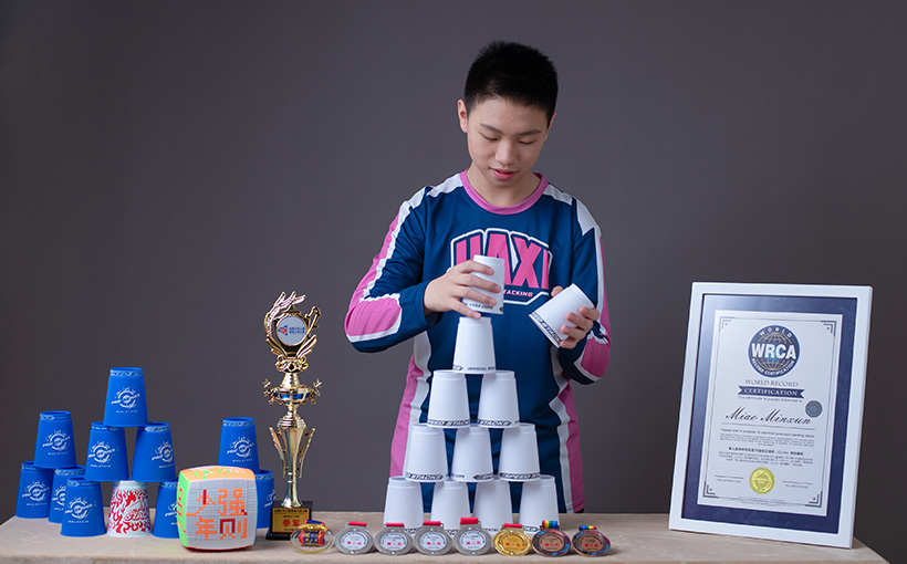 2020年12月19日,来自中国的缪珉洵在厦门市举办的2020年全国少年儿童潜能三项大赛中以最快时间完成10组花式循环(Cycle)竞技叠杯挑战,用时1分30.951秒。经世界纪录认证(WRCA)官方审核,缪珉洵成功创造“单人最快时间完成10组花式循环(Cycle)竞技叠杯”世界纪录。