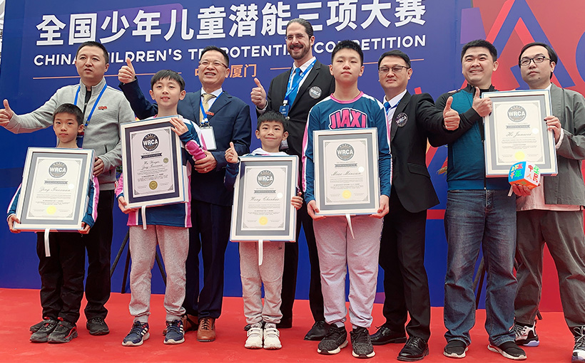Miao Minxun (China) completed 10 individual cycle sport stacking stacks in the shortest time in the 2020 China Children's Tri-Potential Competition in Xiamen, China. Verified by the WRCA, Miao Minxun set the world record for the "fastest time to complete 10 individual cycle sport stacking stacks".