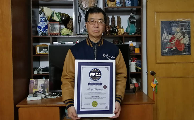 Tang Peiyong from Shanghai, China made a teapot with toothpicks. Officially reviewed by the World Record Certification Agency (WRCA), the maximum diameter of the teapot is 30.5 mm and the height is 23.5 mm, confirmed as "the world's smallest toothpick-made teapot".