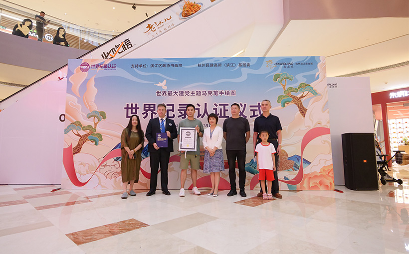 The largest marker drawing on the founding of a party, created by Zhang Kun (China) in Hangzhou, China, is 38.3 m long and 2.93 m wide. Verified by the WRCA, Zhang Kun set the world record for the “largest marker drawing on the founding of a party”.