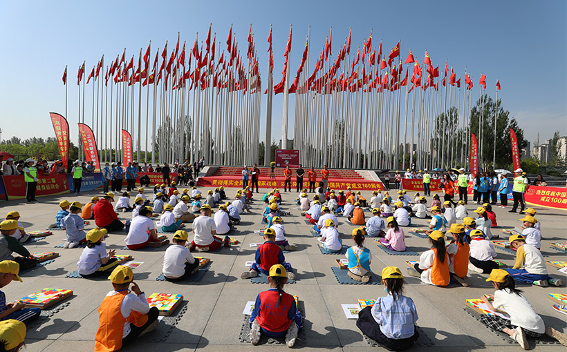 “建党100周年,永远跟党走”世界纪录认证挑战主题魔方拼图活动,是由全国135个城市的魔方运动协会和社团组织共同参与承办,庆祝中国共产党建党100周年。在各地的活动现场,每个孩子用手中的魔方来拼接一个图案,最终工作人员将所有的图案拼接起来,形成“庆祝中国共产党成立100周年”的大型魔方拼图。
