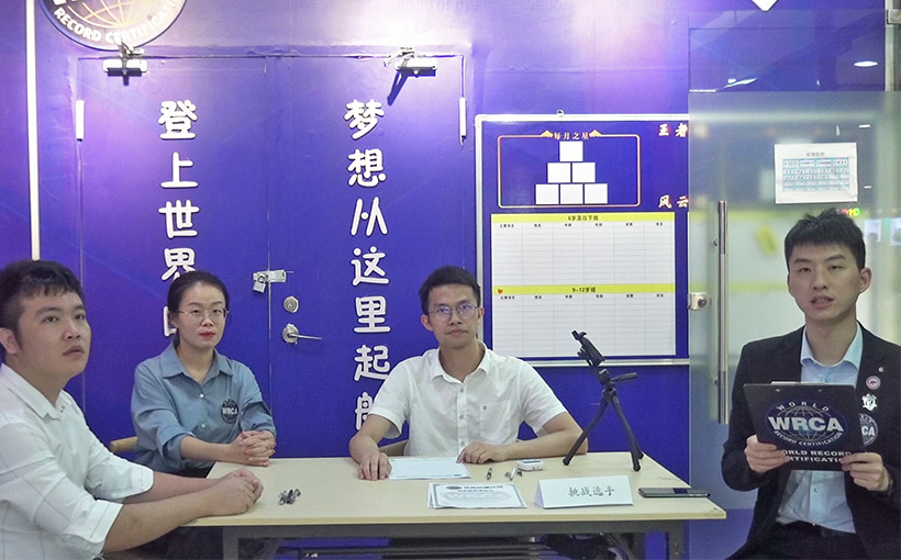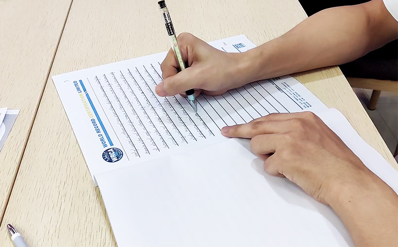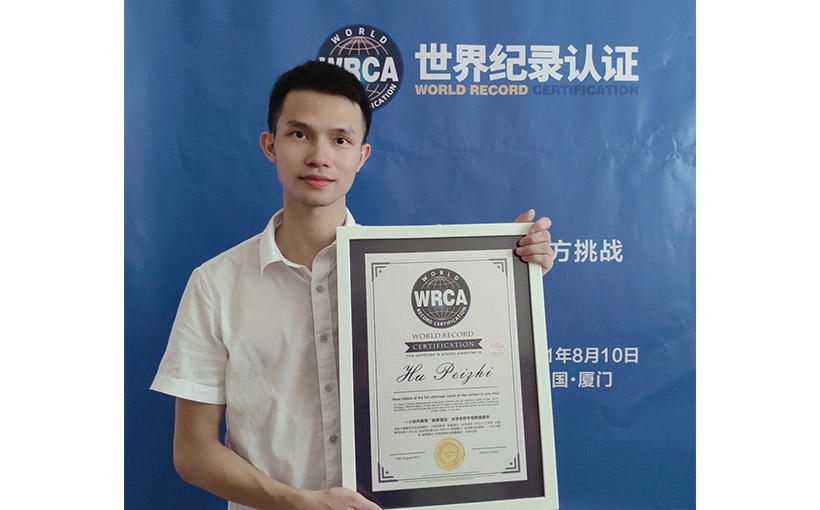 Hu Peizhi (China) attempted to write from memory the full chemical name of titin, which contains 189,819 letters. It took him 60 minutes to correctly write 5,850 letters. Verified by the WRCA, Hu Peizhi broke the world record for the "most letters of the full chemical name of titin written in one hour".