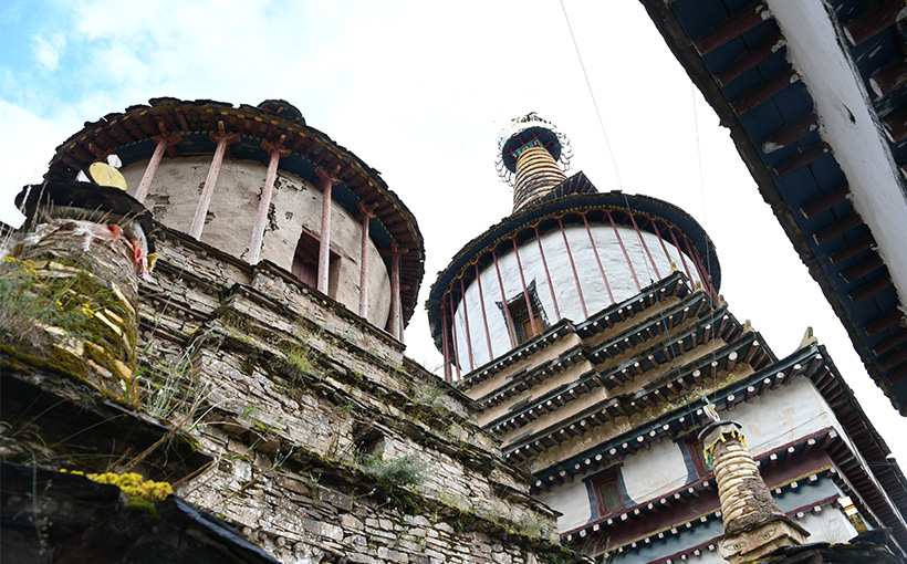 位于川西北高原的壤塘拥有丰富的文化资源,集聚安多、康巴、嘉绒等藏民族,形成了一方文化“大观园”,先后被国家有关部门评为“中国民间艺术之乡”“中国藏族民间文化保护传承基地”,其中最耀眼的要数棒托石刻公园。走进壤塘,随着蜿蜒的国道227,在林幽草深间遇见棒托石刻公园,墙壁上色泽艳丽的石刻、鳞次栉比的佛塔夺人眼球。而石刻大藏经就深藏在这些形状各异的佛塔中,素有“藏族百科全书”之称的大藏经《甘珠尔》、《丹珠尔》镌刻在一张张不规则的石板上,堆砌在平地间。整个藏经堆左高9.7米,右高9.2米,长46米、左宽160米,右宽13米,占地694平方米。常年的风吹日晒在石刻上留下了岁月的痕迹,显得整个石刻藏经堆愈发的古朴、厚重。