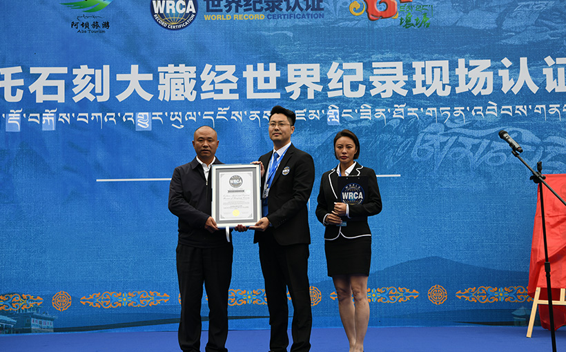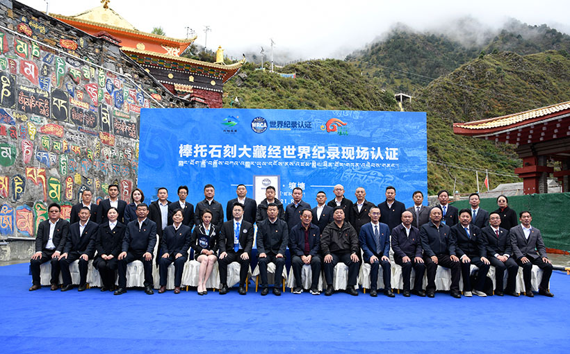 The largest stone carvings of the Buddhist canon consist of about 500,000 items and are located in Bangtuo Stone Carving Park, Rongmuda Township, Rongtang County, Ngawa Tibetan and Qiang Autonomous Prefecture, Sichuan Province, China. The stones, stacked one on top of each other, cover an area of 694 m2, verified as the “largest stone carving of the Buddhist canon” by the WRCA.