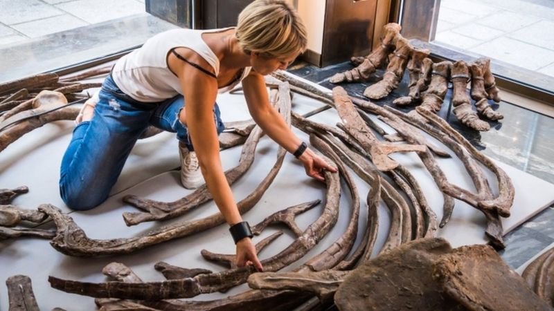 The first piece of bone from the supersized skeleton – the skull alone is 2.62 meters long and two meters wide – was found in 2014. By 2015, paleontologists had unearthed 60% of the skeleton, a rare feat, made of over 200 pieces which were painstakingly put together in Italy, to prepare for the Paris auction.