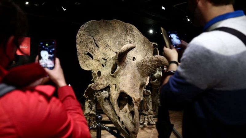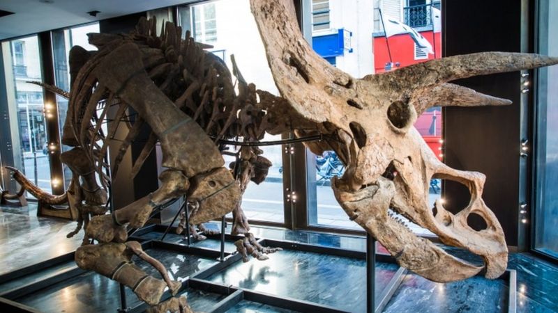 具有6600万年历史、迄今出土最大的三角龙骨架化石“大约翰”(Big John),长2.62米,宽2米,在10月22日,以660万欧元(约4936万元)成交价拍出,创下欧洲同类拍卖品纪录。“世界最大的三角龙化石”被WRCA世界纪录认证官方认证并收录于数据库。