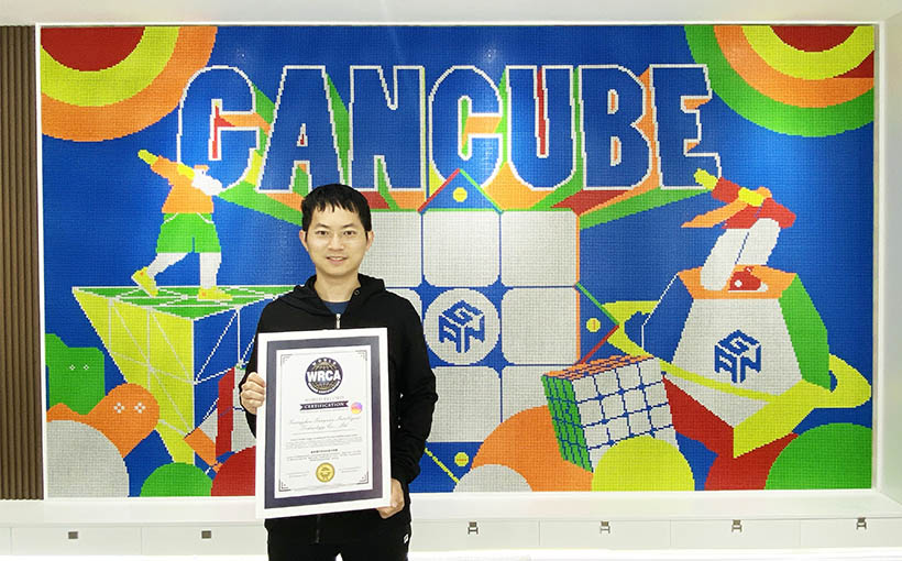An indoor mosaic image, consisting of 14,400 3×3×3 Rubik's Cubes measuring 28 mm on each side, was created by participants in an official world record attepmt organised by Guangzhou Ganyuan Intelligent Technology Co., Ltd. (China). Verified by the WRCA, the company has set the world record for the “indoor mosaic image consisting of the most rotating puzzle cubes”.