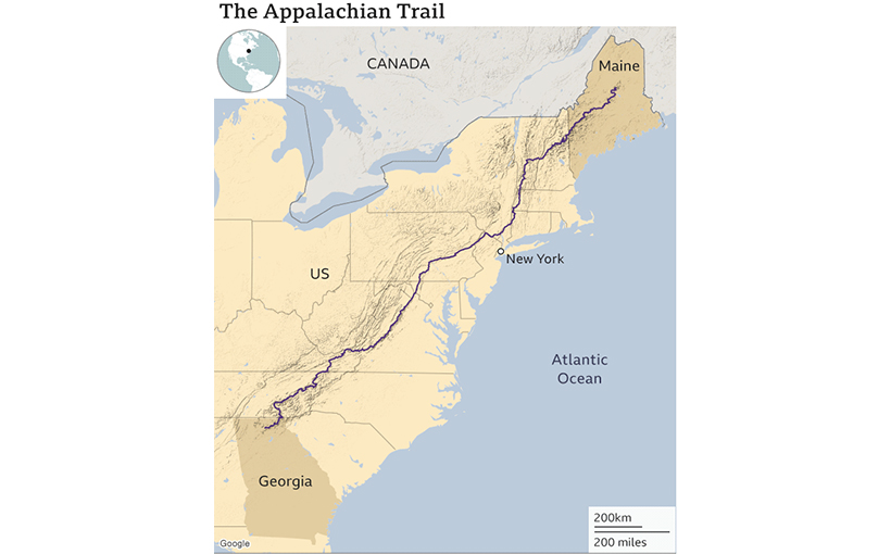 阿帕拉契小径是美国东部一条著名徒步小径,起自乔治亚州史普林格山(Springer Mountain),终点位于缅因州卡塔丁(Katahdin),南北纵跨14州,途经八个国家森林和两座国家公园,长达3530公里,是世界上最长的纯徒步旅行路线。
