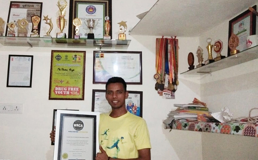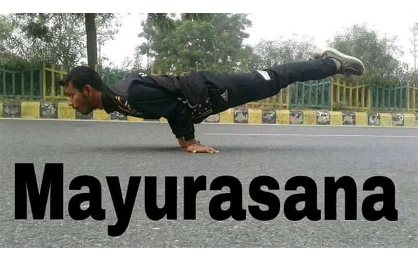 Mr. Pawan Singh has performed the Mayurasana position for 1 minute and 30 seconds on May 15th, 2018. Mr. Pawan has thus created a new world record of the Longest time of holding the Mayurasana position.