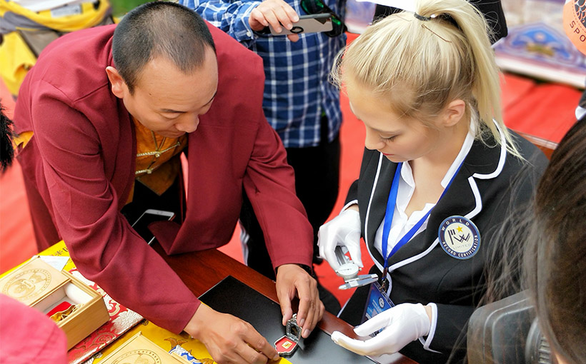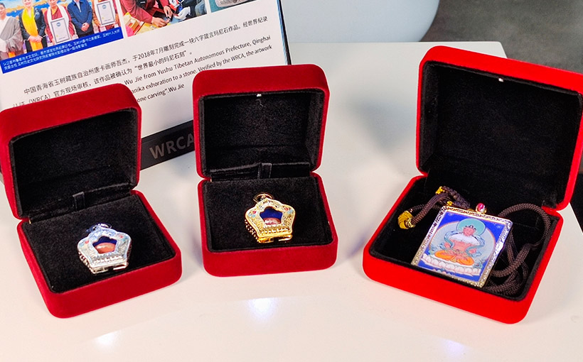 In July, 2018, tanghka painter Mr. Wu Jie from Qinghai province, Yushu Tibetan AO, carved six characters of Manika exhoration to a stone. WRCA Agents performed on-site authentication and verified the work with a world record of the "Smallest Mani Stone Carving".