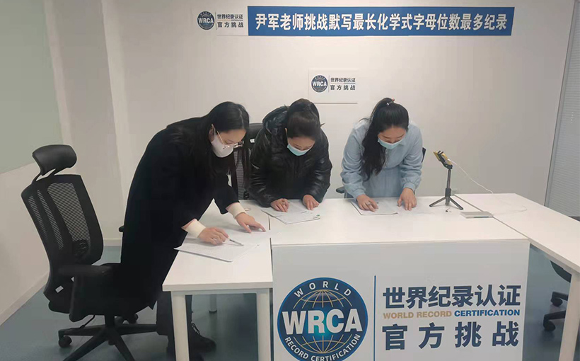 Yin Jun (China) attempted to write from memory the full chemical name of titin, which contains 189,819 letters. It took him 1 hour and 53 minutes to correctly write 10,011 letters. Verified by the WRCA, Yin Jun broke the world record for the "most letters of the full chemical name of titin written".