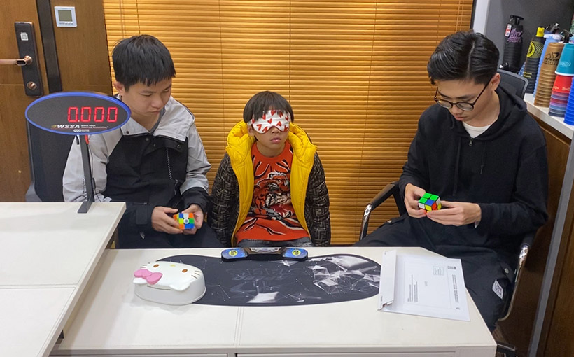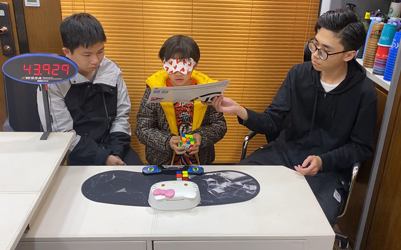 Lin Shenhan (China, b. 21 April 2014) successfully solved a 2x2x2 Rubik's Cube and a 3x3x3 Rubik's Cube blindfolded in 1 minute 42.93 seconds in Nanning City, China, on 29 December 2020. Reviewed by the WRCA, Lin Shenhan broke the world record for the youngest person ever to solve a 2x2x2 and a 3x3x3 Rubik's Cube blindfolded.