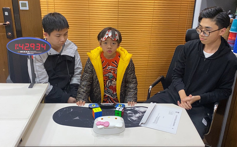 来自中国厦门市的林珅涵(出生日期:2014年4月21日)于2020年12月29日在南宁市连续盲拧还原1个二阶魔方和1个三阶魔方,用时1分42.93秒。经世界纪录认证(WRCA)官方审核,林珅涵成功刷新“最小年龄连续盲拧还原二阶和三阶魔方”世界纪录。