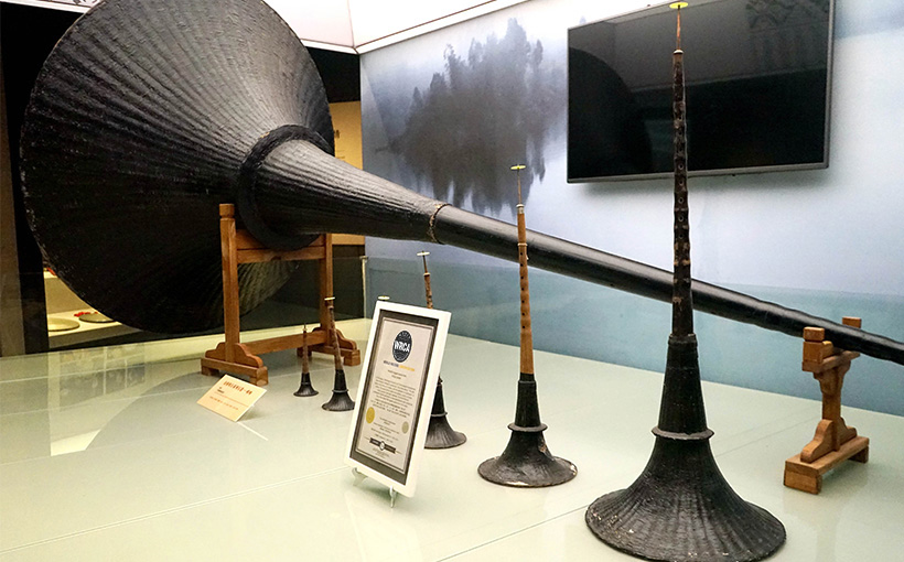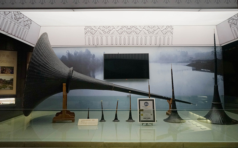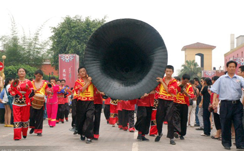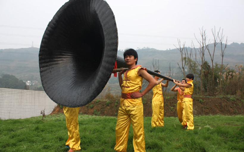 In Chongqing, Wansheng Economic and Technological Development Zone Museum collected a suona horn "Qing Shan Mang". The total length of the horn is 4.5 metres, with the diameter of mouthpiece 1.8 metres. The suona horn is made from bamboo, wood, ox bones, hemp, gypsum and other materials. The World Record Certification Agents performed on-site authentication and verified the "Qing Shan Mang" the biggest suona horn in the world.