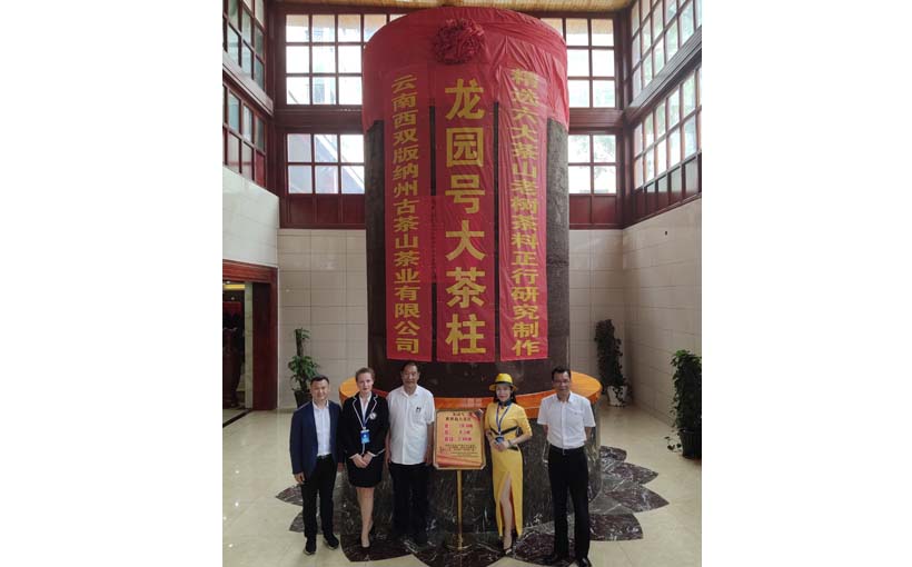 由中国云南西双版纳州古茶山茶业有限公司制作的普洱茶紧压茶,形状为圆柱体,重量为20.6吨,高度为4.5米,直径为2.86米,体积为28.9立方米。经世界纪录认证(WRCA)官方审核,该茶柱被确认为“世界最大的茶柱”。
