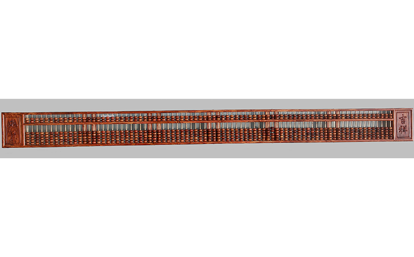 The abacus collected by He Zelin (Haikou, China) is crafted from Hainan huanghuali (Dalbergia odorifera T. C. Chen) using a full mortise-and-tenon structure. It measures 254 cm in length, 4 cm in width, 21 cm in height, and weighs 9.3 kg. Verified by the WRCA, it has been confirmed as the "Largest Hainan Huanghuali Abacus".