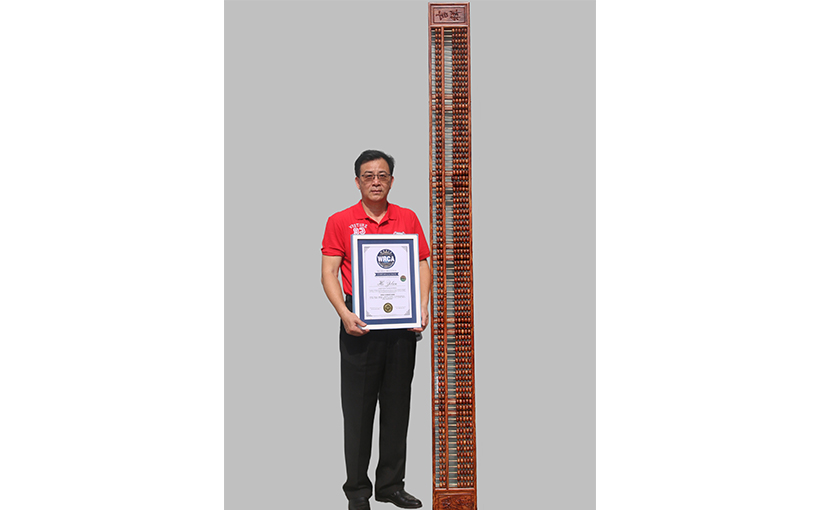 以上是“世界最大的海南黄花梨算盘”的详细信息,您还可通过WRCA世界纪录认证官方网站或在百度中搜索纪录编号“WRC241011C”以获取更多相关资讯。