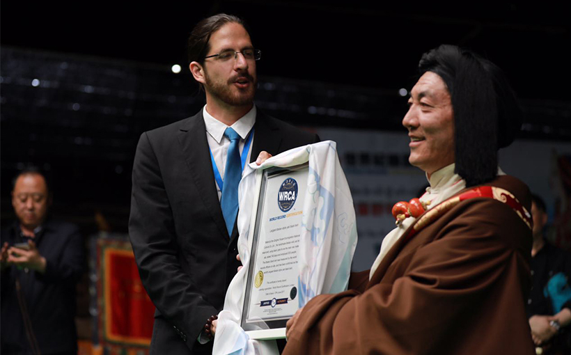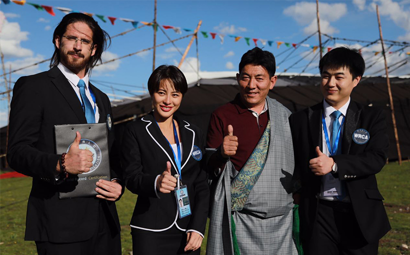 伴随着盛大的认证仪式正式开始。经世界纪录认证机构(WRCA)现场测量数据,单体总面积1711.08平方米,认定为“世界最大的黑牦牛帐篷”世界纪录,玉树州委书记吴德军,州委副书记、州长才让太,副州长尕桑及世界纪录认证官员大明先生,格萨尔国家级专家董·诺尔德,藏族历史学家德荣才仁邓珠,西藏牦牛博物馆馆长吴雨初先生,兰州大学博士生导师、著名教授宗卡·漾正冈布等领导和专家参加。