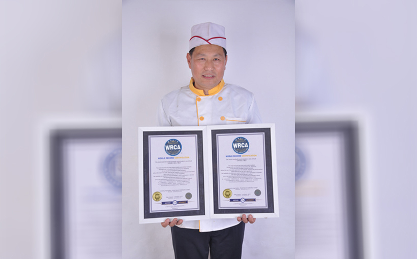 The world record for the most quick-boiled meatballs belongs to Mr. Lv Chuanbo from Zoucheng city, Shandong. In one minute he managed to single-handedly, without the use of any tools, quick-boil 125 meatballs, breaking the previous record. Using meat and flour as main ingredients, the meatballs are edible and measure between 1 and 2 centimeters in diameter. The result of the record attempt is verified and a new world record is officially set, therefore this certificate is issued.