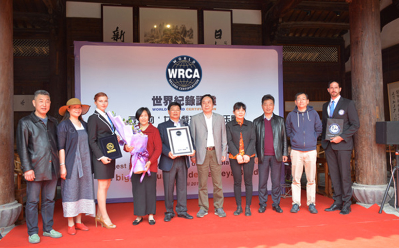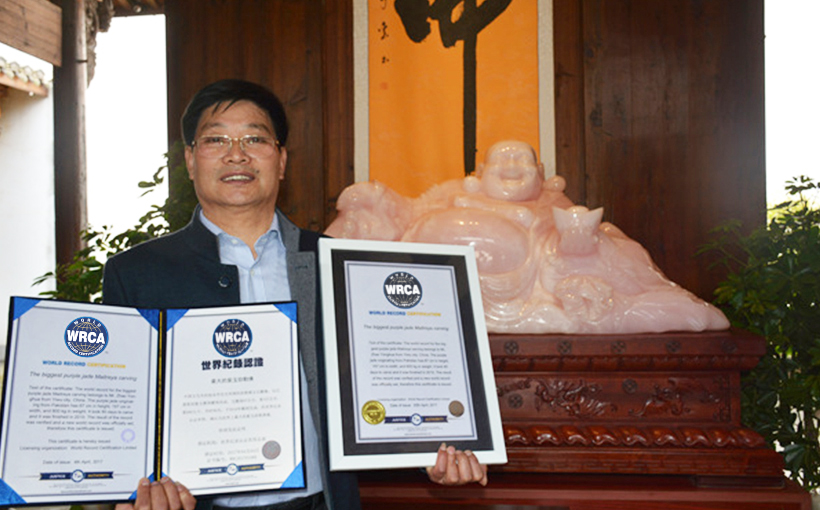 The jade carved “Dragon turns over Jiuzhou” belongs to Mr. Zhao Yonghua from Yiwu city, China. was carved into a jade originating from Pakistan. It has 8 tons in weight, 4.5 meters in length, 2.1 meters in height, 0.57 meters in width and covers total capacity of 5.39 cubic meters. It took 10 months to carve and it was finished in 2012. The result of the record was verified and the “Dragon turns over Jiuzhou” was officially set as the world’s biggest “ Nine dragons playing with pearl” jade carving.