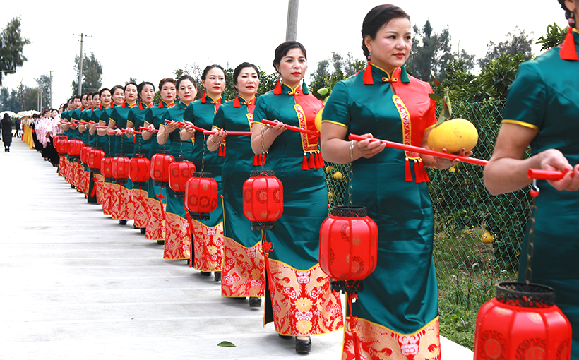 当天下午三时许,世界纪录认证官宣布挑战开始。在120余亩的文旦基地里,柚香弥漫,202名旗袍爱好者身着典雅的中国传统服装旗袍,迈着轻盈的脚步,款款走来。循着悠扬的乐声,她们或手撑油纸伞,或轻执纱扇优雅地穿梭于黄绿相间的文旦基地中,举手投足间摇曳生姿,尽显女性的柔美与妩媚。