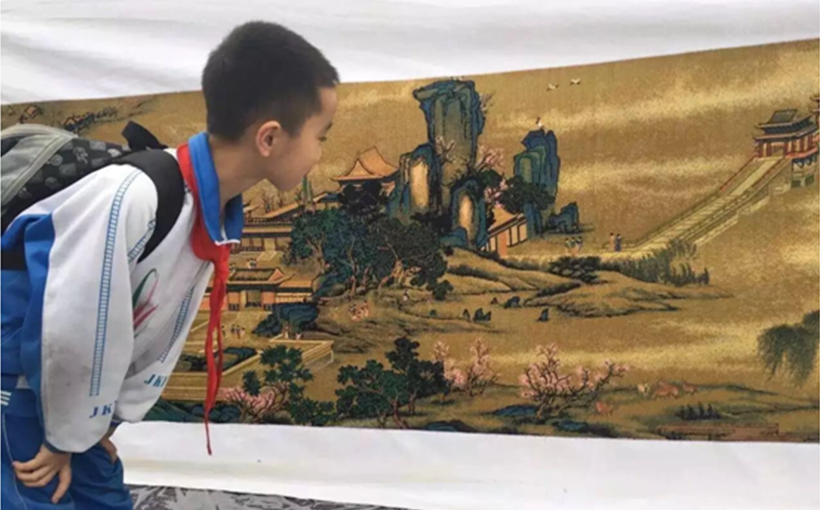 Starting in February 2011 and finishing in May 2016, Deng Junfen (Guizhou. Tongren) embroidered a 33 meters long,1.5 meters wide "Along the River During the Qingming Festival" panoramic cross-stitched embroidery, which includes figures of more than 1790 people, 29 boats, 17 bridges, more than 770 trees, more than 214 buildings, 105 horses and other livestock.