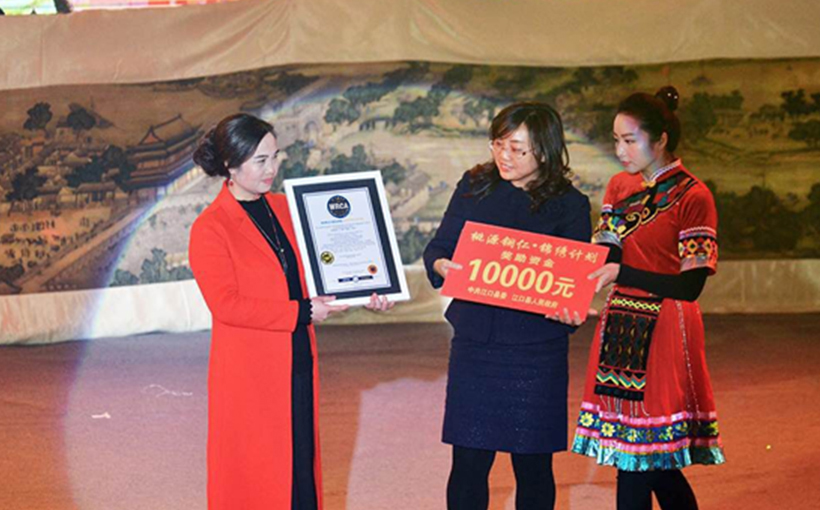邓均芬(贵州·铜仁)自2011年2月至2016年5月绣制长33米,宽1.5米《清明上河图》全景十字绣,包括人物1790余人,船只29艘,桥17座,树木770余棵,房屋214余座,牲畜105匹等,经世界纪录认证(WRCA)官方核实,被认定为是“世界最长的十字绣《清明上河图》”。2017年初江口县长扬云在县政府召开的庆功大会上为邓均芬颁发世界纪录认证证书。