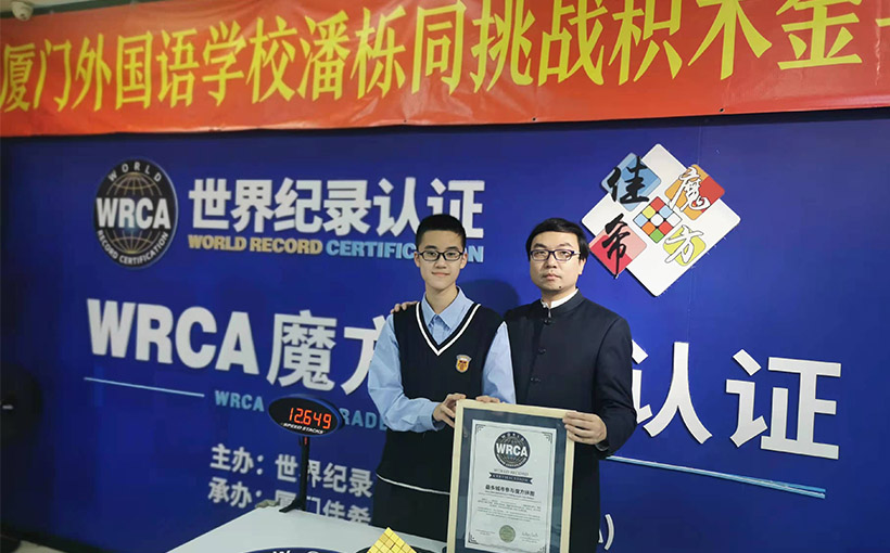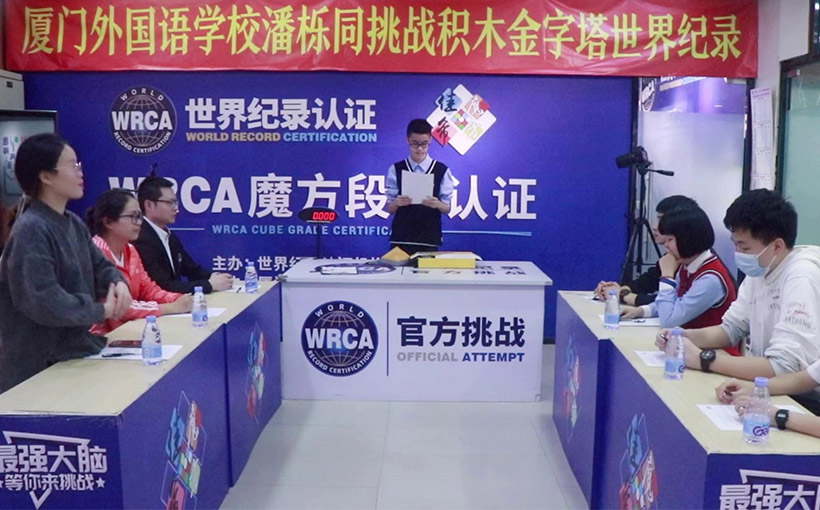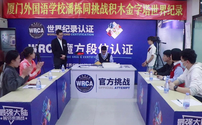 来自中国厦门市的潘栎同于2021年11月22日在厦门市成功完成积木金字塔挑战,用时12.649秒。经世界纪录认证(WRCA)官方审核,潘栎同成功创造“最快时间搭积木金字塔”世界纪录。