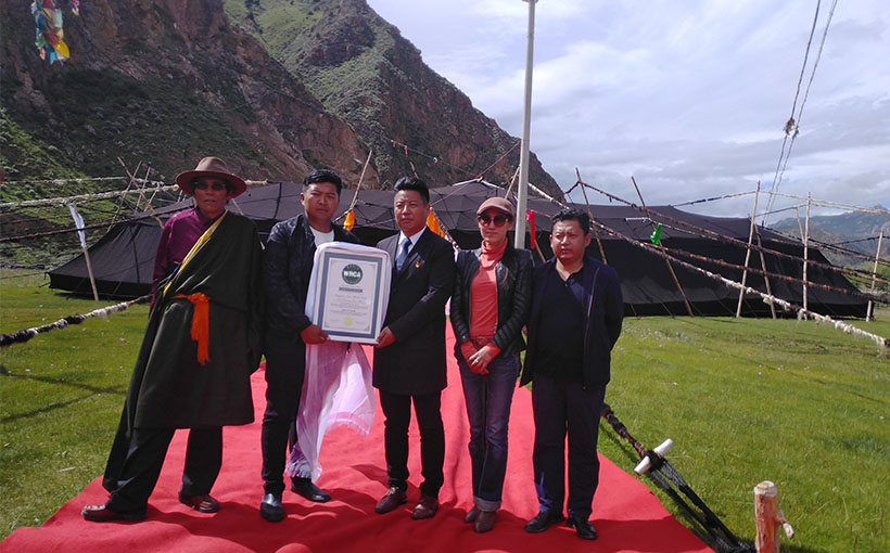 2019年7月15日上午,中国青海省玉树州囊谦县,经官方工作人员现场测量审核,该帐篷面积为1838.37平方米,最高度达6米,被确认为“世界最大的牦牛毡黑帐篷”。