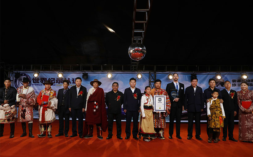 Nangqian Suge Black Tent Eco-Tourism Co., Ltd. organized nomads to make a Tibetan black tent by hand with yak hair as the main material. Measured on site by the official staff of the World Record Certification Agency, the tent covers an area of 1838.37 square meters with a height up to 6 meters, recognized as “the world's largest black yak hair tent”.