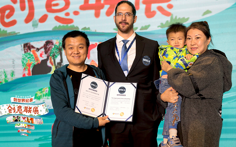 After an official site measurement and verification by the World Record Certification Agency (WRCA) , the artwork has been awarded the following record: "The longest parent child scroll painting in the world".