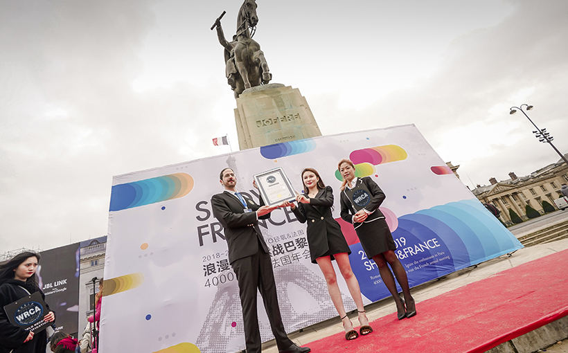 A tour group was photographed during a trip to France by Beijing Meiruo Tiancheng Trading Co., Ltd. After an on-site verification by the World Record Certification Agency officials, the event set a world record for the biggest tour group photo shoot.