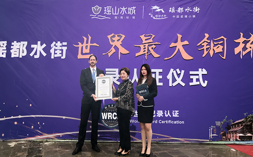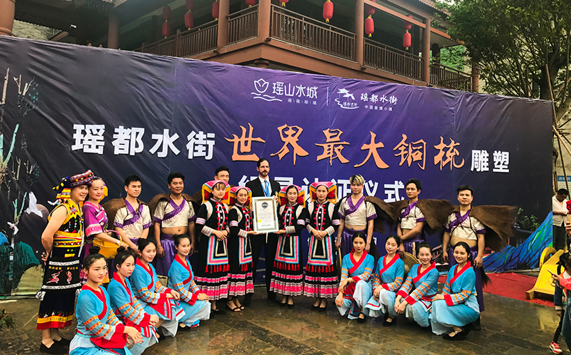 中国湖南省江华瑶族自治县瑶都水街旅游地产开发有限责任公司组织打造的“结发梳”艺术雕塑,长11.5米,宽6.5米,由铜梳、飘带组成。其中,铜梳由黄铜铸造,长7.05米,高3.8米,厚0.87米。2018年4月30日,经世界纪录认证(WRCA)官方审核,被认定为是“世界最大的铜梳雕塑”。