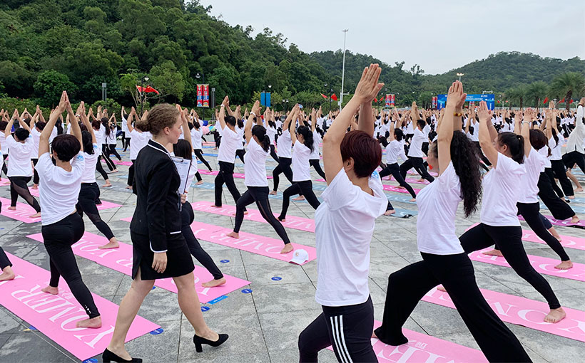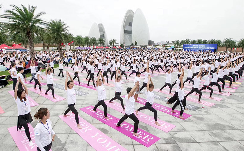 The 2019 International Yoga Carnival was held in Zhuhai, China. 898 participants performed a Warrior Ⅰ pose (yoga) simultaneously during the event. Verified on site by the World Record Certification Agency (WRCA), the event was confirmed as “the most people performing a Warrior Ⅰ pose (yoga) simultaneously”.