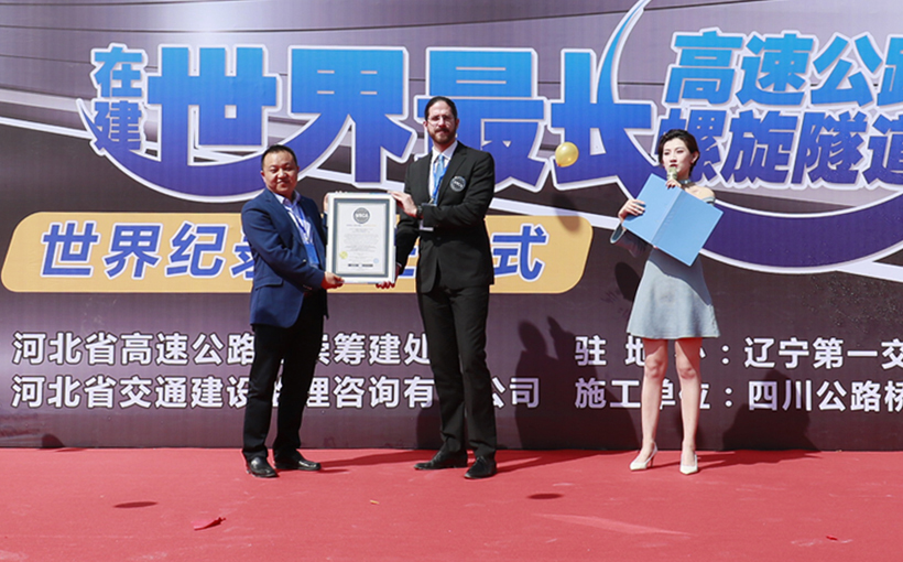 中国河北省延庆至崇礼高速公路河北段ZT10标段,在建的金家庄特长螺旋隧道,由河北省高速公路管理局延崇筹建处投资,河北省交通建设监理咨询有限公司和辽宁第一交通工程监理有限公司共同监理,由四川公路桥梁建设集团有限公司承建。金家庄特长螺旋隧道左洞长4228米;右洞长4104米。经世界纪录认证英国总部审核,2018年4月20日,确认为世界最长的高速公路螺旋隧道(在建)。