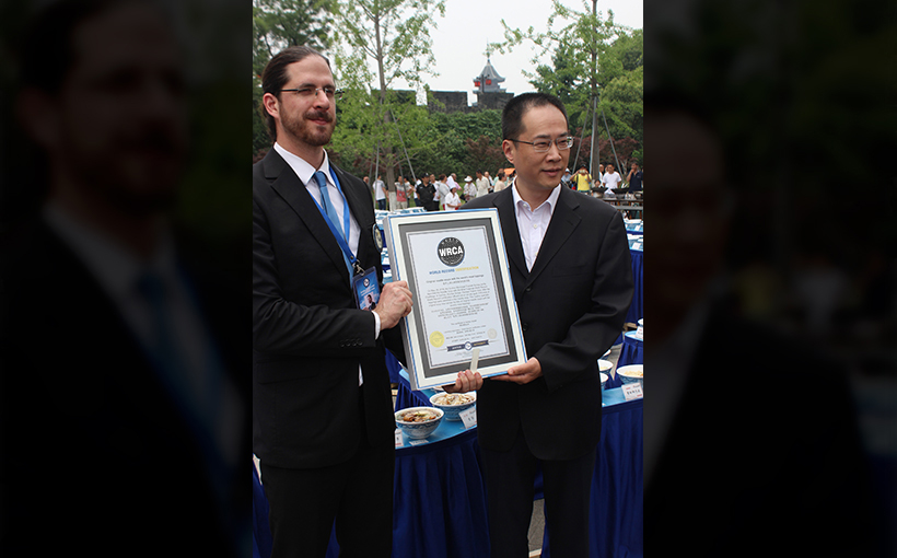 On May 18,2018,the Suzhou Municipal Tourism Bureau jointly launched the Noodle Soup with the Most Toppings World Record Challenge, in Suzhou, Wumen Bridge, Panmen Scenic Area. After the World Record Certification officers did an on-site audit, 518 kinds of toppings were identified in the noodle soup. The Suzhou specialty original soup now carries the title of Original noodle soups with the world’s most toppings.