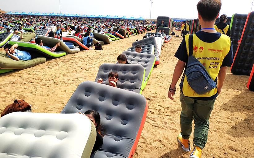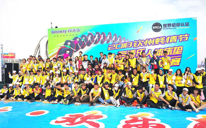 The Largest Scale Human Mattress Domino Tour Challenge was launched by Bestway Global Holding Inc. in Guangxi. The challenge, supervised on-site by World Record Certification Agency officials, involved 2186 participants and surpassed the previous record, thus confirmed as the worlds longest human mattress dominoes.
