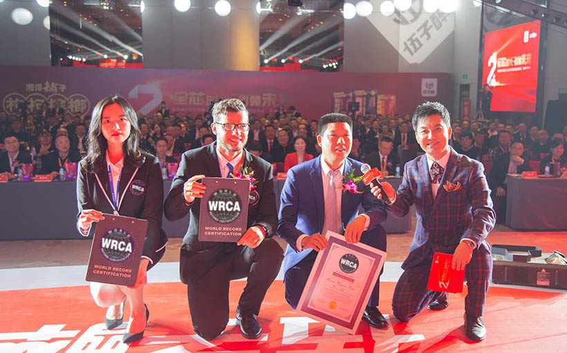 2019年11月20日,在中国湖南省伍子醉有限公司发起的世界纪录认证官方挑战中,由100名员工共同绘制完成了一幅“周年庆祝语”图画。该图长27.81米,宽15米,经世界纪录认证(WRCA)官方审核,此次活动被确认为“最大的周年庆祝语图案”世界纪录。