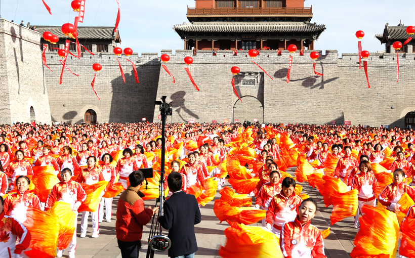 2018年10月9日上午,山西大同古城南城墙关城内热闹非凡,来自山西省各地市及河南、山东、北京、天津等省、大同市平城区、云州区、云冈区、新荣区、阳高县、天镇县等县区的20150名广场舞爱好者聚集在这里,参加由大同市文化局、大同市体育局等主办、大同市广场舞协会、大同市心连心艺术团承办的“世界最大规模的排舞”世界纪录挑战大型活动。