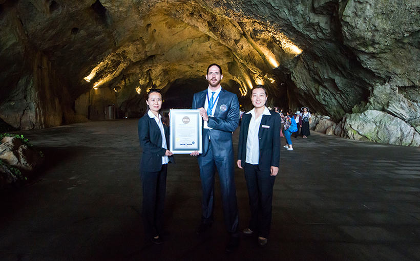 Benxi Shuidong Scenic Spot, located in Benxi City, Liaoning Province, China, has developed a 2,323-metre length of underground river that can be traveled by boat along a scenic area. The Benxi Shuidong Scenic Area was identified as the world’s longest underground river scenic area for continuous cruises, according to the World Record Certification Agency official on-site staff audit.