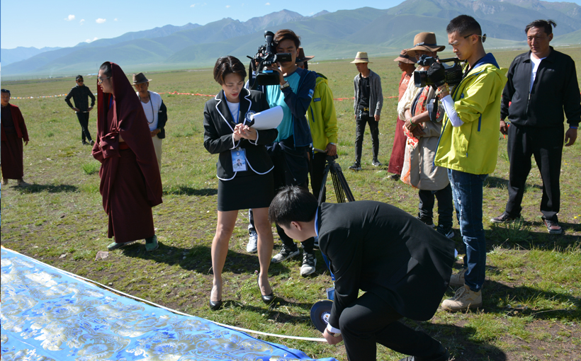 2017年7月19日上午,玉树巴塘草原上,巨幅堆绣唐卡从巴塘河边铺向天边。英国伦敦权威认证机构世界纪录认证官员潘淑娜和中方代表王静宣布巨幅堆绣唐卡通过“世界最大的唐卡”世界纪录认证。著名摄影师、作家东周诺布主持认证活动,州文联主席彭措达哇、三江源报社社长才仁当智、囊谦县委副书记格来彭措、玉树市副市长格扎等出席。